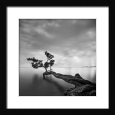 Пейзаж, внутри которого хочется немедленно оказаться. Водная гладь до горизонта и раскинувшееся над ней дерево. Сумерки.