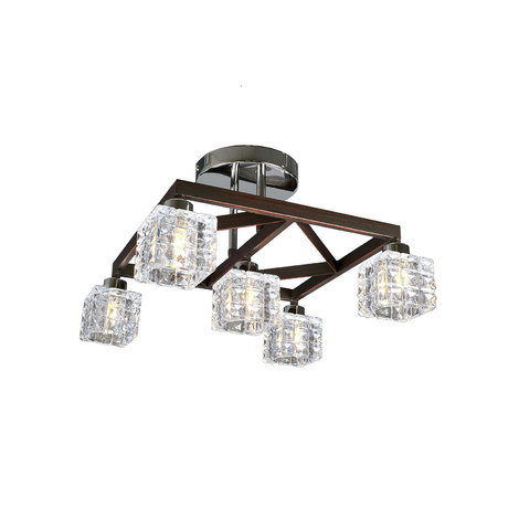 Назначение светильника: для гостиной, Стиль светильника: модерн, Тип: потолочная, Материал светильника: металл, дерево, стекло, Длина: 360 мм, Ширина: 360 мм, Высота: 214 мм, Количество ламп: 5 шт, Тип лампы: галогенные и светодиодные, Мощность: 40 Вт, Патрон: G9, Пульт ДУ: нет, Цвет арматуры: коричневый/хром