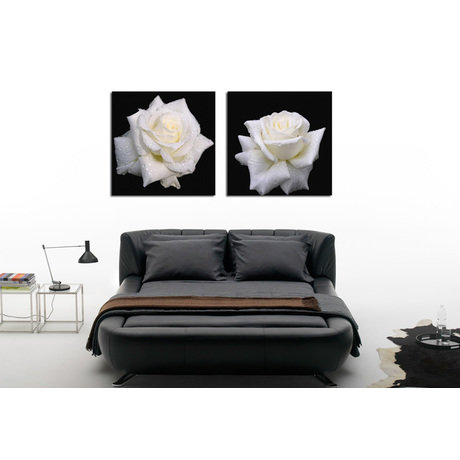 Изображения двух свежих роз в интерьере подарят романтическую атмосферу. Такой диптих может стать отличным подарком ко дню свадьбы или годовщины семейной паре.
