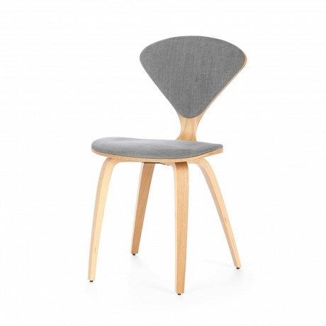 Американский дизайнер Норман Чернер с 1947 по 1949 год проработал в Музее современного искусства в Нью-Йорке, где досконально изучил труды идеологов баухауса, и в своих творениях решил следовать их заветам — создавать недорогую удобную мебель, которую мог бы себе позволить каждый. Он одним из первых стал применять фанеру — недорогой и легкий материал, и в 1958 году создал свой культовый стул Cherner «с тонкой талией» из фанеры под дерево. Конструкция разработана с учетом анатомических особенностей человека, и сидеть на этом стуле очень комфортно. До серийного производства в 1999 году мебель Чернера была доступна лишь немногим счастливчикам-коллекционерам, а теперь их ряды можете пополнить и вы. Поставьте несколько стульев Cherner с обивкой в ряд на кухне у деревянной стойки, у рабочего стола (именно на таких сидел когда-то знаменитый иллюстратор и художник газеты The Saturday Evening Post Норман Роквелл) или у стены с журнальным столиком и вазой — смотрится очень эффектно. Высота: 81,5 см. Ширина: 44 см. Глубина: 54,5 см. Материал каркаса: Фанера. Материал обивки: Ткань. Цвет обивки: Серый. Цвет каркаса: Американский белый дуб.