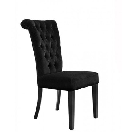 Тем, кто отдает предпочтение строгим канонам и формам, предлагается данная модель стула для гостиной или кабинета. Ножки стула выполнены из дерева, в качестве материала обивки выбран черный бархат. На спинке есть круглая ручка стального цвета для удобного перемещения. Сдержанная классическая модель стула, которая будет популярна во все времена. Высота сиденья 47 см.